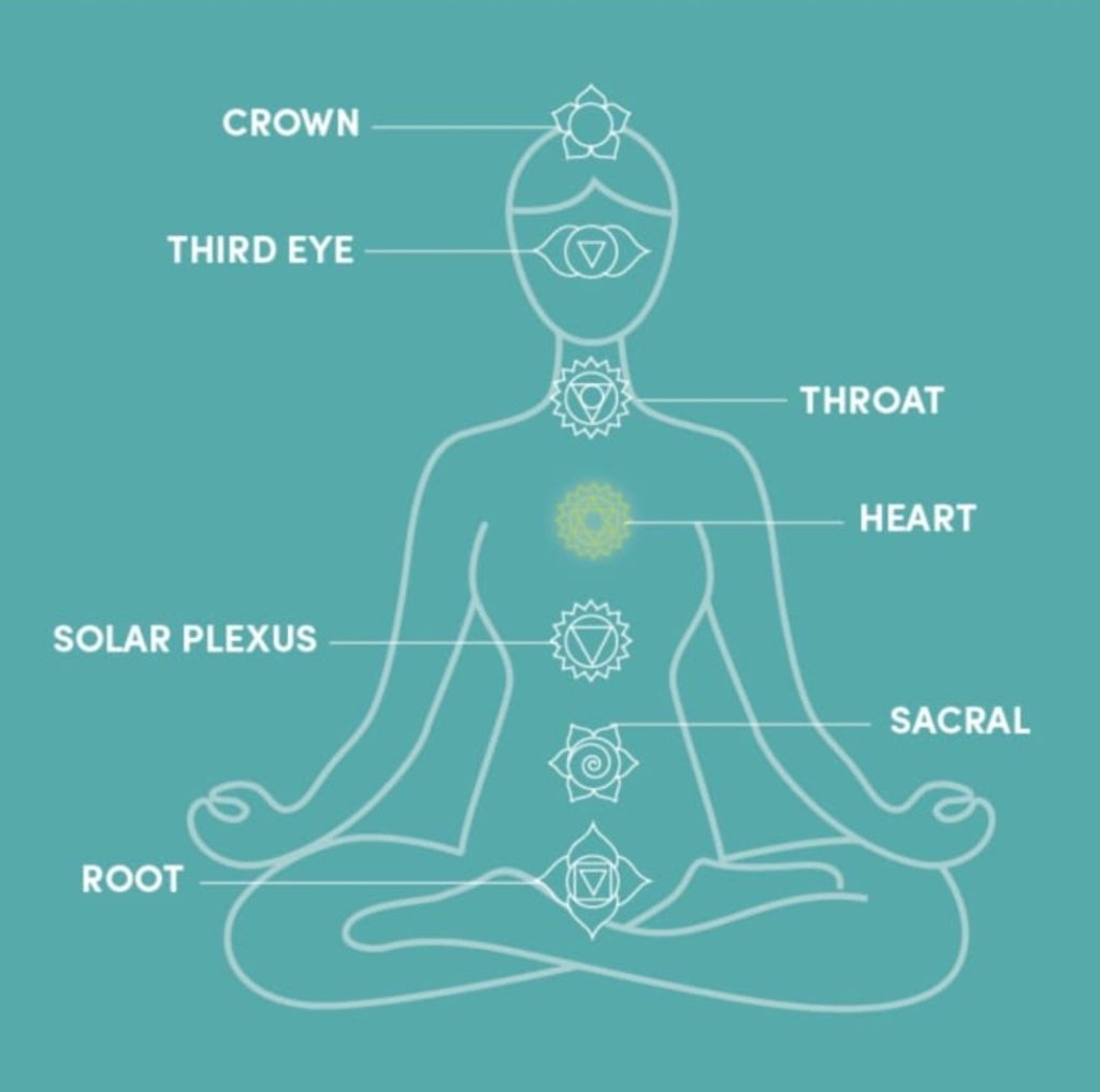 In Indian philosophy, there are 7 different energy centres in the body, know as chakras. The word chakra means ‘wheel’ in Sanskrit & is thought of as a vortex or spinning disk of energy.