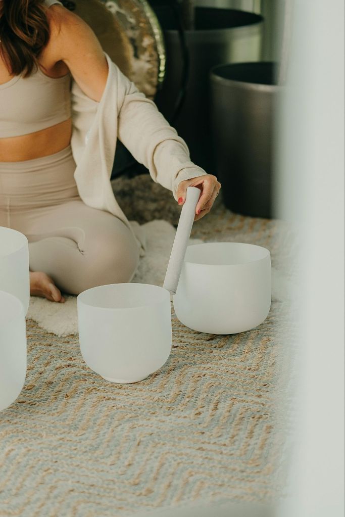 An example of a sound healing technique that affects brainwave function is the phenomenon of entrainment, whereby different frequencies can come into sympathetic resonance with the body, creating a state of coherence. This could be achieved by playing many different instruments. Crystal chakra bowls create a pure healing tone, each bowl being tuned to frequency of the different chakras, when we hear & feel the vibrations of these tones, our chakras & the cells & atoms in our body start to resonate with that sound, naturally balancing these energy centres to the higher frequency of the bowls. This natural phenomenon of entrainment can leave us feeling deeply relaxed, replenished, & in balance.