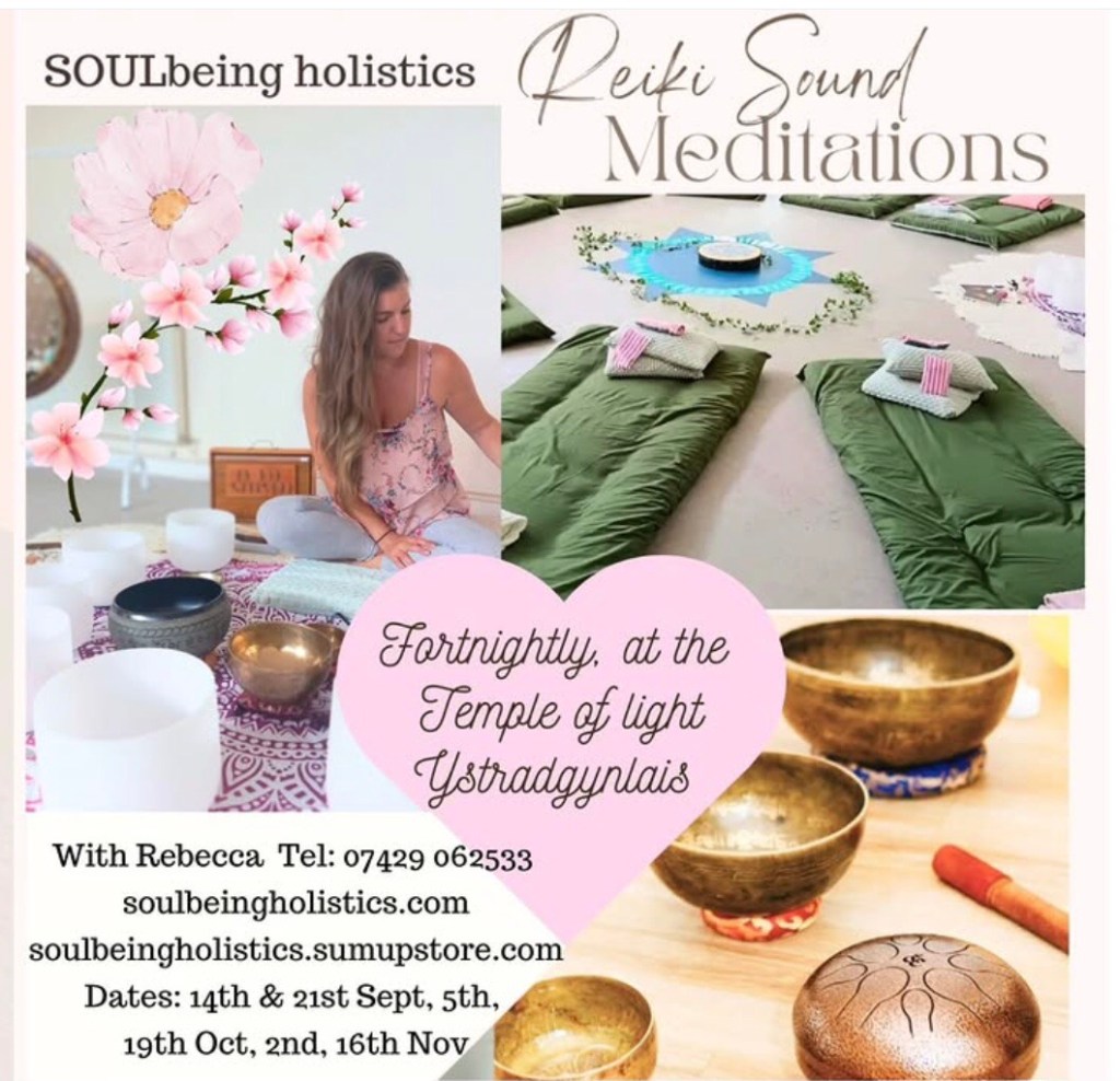 We hold fortnightly Reiki sound meditations & mum & baby soundbaths at The Temple of light, Ystradgynlais & quarterly mini retreats for the seasonal changes.